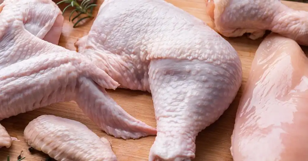 Warna cerah, tekstur kenyal, tidak berair berlebihan - Ayam beku yang dicairkan